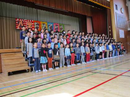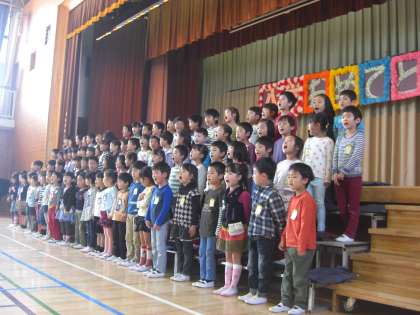 1年生を迎える会では、全校のお兄さん、お姉さん、おうちの方に見守られ、嬉しそうな笑顔を見せていました。今日まで練習してきた「1年生になったら」を元気に歌いました。