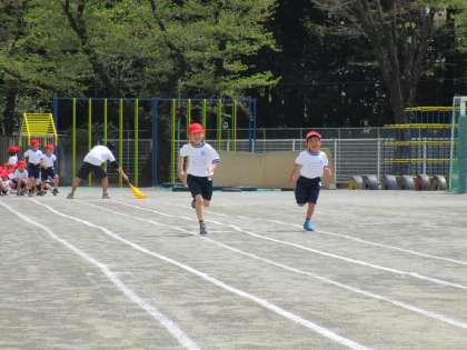 3校時には、校庭での初めての体育を行いました。50メートルを力いっぱい走りました。来意週も、運動会に向けてまっすぐ走る練習をしていきます。