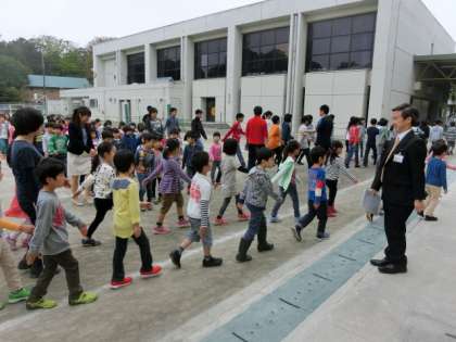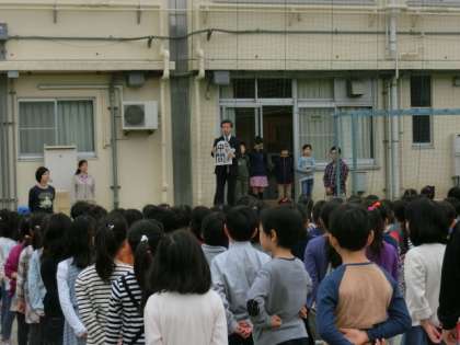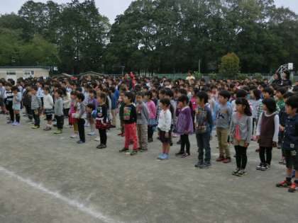 土曜日の“1年生を迎える会”で上級生から温かく迎えられ仲間入りした1年生。今日の全校朝会でも仲間入りしました。上手に整列して、話を聴いたり、行進して昇降口に移動したりしていました。今後も、集会や縦割り班活動、その他休み時間の校庭遊びも上級生と一緒に行います。よろしくお願いします。