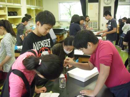 理科では「もののもえ方と空気」の学習を進めています。今日は3組が実験を行いました。