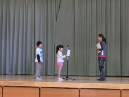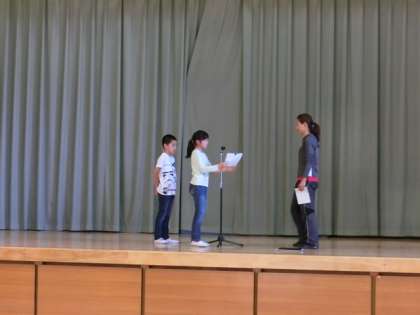 今日の中休みに体育館で、来週28日(火)に行う「離任式」のリハーサルを行いました。お礼の手紙を読み、みんなからのメッセージを渡す練習でした。少し緊張しながらも担当の先生からのアドバイスを受けながら、位置やタイミング、あいさつの仕方などを確認することができました。去られた教職員との再会が楽しみな子どもたちです。