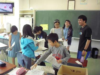 運動会スローガンの作成のために全学級から案を募集したり、赤白それぞれのシンボルマークのデザインを募集し投票準備をしたり、当日に全校で楽しめる新企画を立てたりしています。