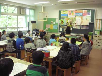 体育ではリレーの練習、社会では古墳時代の様子、図工では花のスケッチをもとにした絵画の作成と、真剣に取り組んでいました。