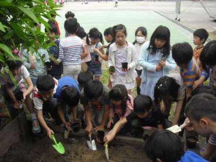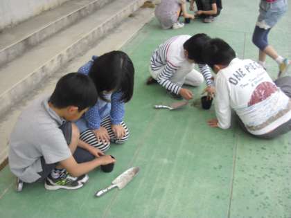理科の学習でヒマワリとホウセンカの種をまきました。