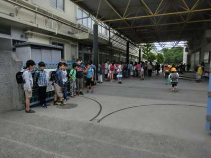 今日は5月のあいさつ週間2日目。正門と東門では、6年生と4年生が声かけ隊を務めていました。互いのあいさつも活発に行われています。