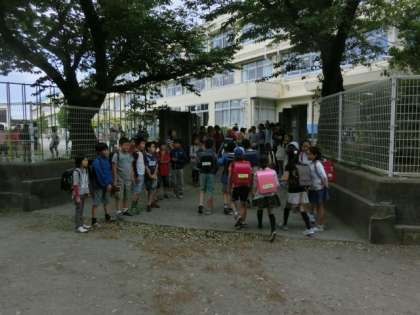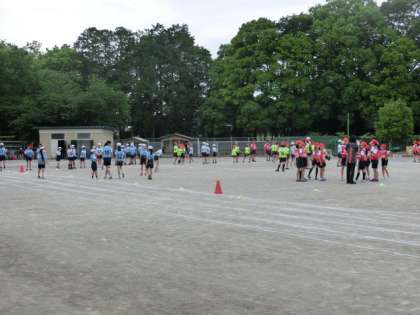 台風6号の影響で、少しずつ風が強くなってきましたが、各学年・学級ともに運動会へ向けての練習を予定通り行っています。