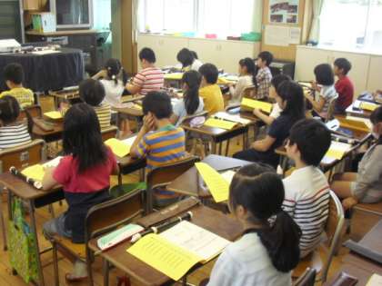 リコーダー学習用のドリルも配られ、さっそく友達と聞き合いながら練習に取り組んでいました。
