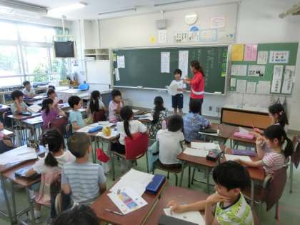 学習のまとめとして、今日の学習のめあてについて振り返り、学習感想を書いていました。“みんな上手に発表していました!”“声の大きさや表情がとてもよかったです!”“金曜日の発表会に向けて頑張ります!”など、1時間の学習への手ごたえが感じられました。本番の発表会が楽しみな子どもたちです。