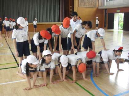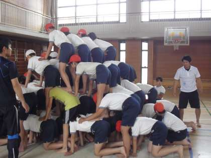 あと1週間にせまった運動会。組体操の練習はいよいよクライマックスの全員ピラミッドに進んでいます。