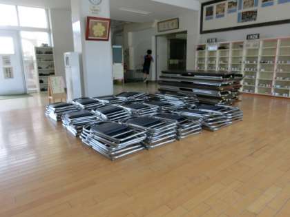 6校時には、5・6年生の子どもたちと教職員で前日準備を行いました。