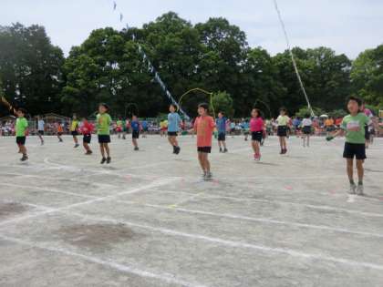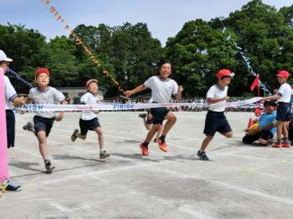 演技では、難しい短縄跳びや長縄跳びも採り入れた元気いっぱいの表現運動。作戦を立てて臨んだ棒引き。2度目となった曲走路での短距離走。一人ひとりの頑張りが伝わってきました。
