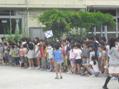 今日の児童集会は、集会委員会が企画した“○×ゲーム集会”を校庭で行いました。
