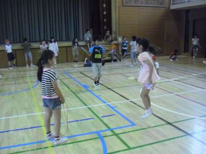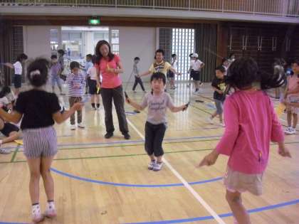 「二重跳びってどうやるのかな?」「ハヤブサ(二重あや跳び)ができたよ。」「前跳びの回数で勝負だ!」などなど活気にあふれた声が聞こえてきました。