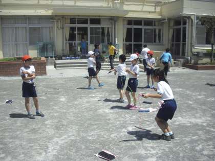 休み時間になると校庭に飛び出して行き、友達と見合いながら少しでも上達しようと頑張っています。