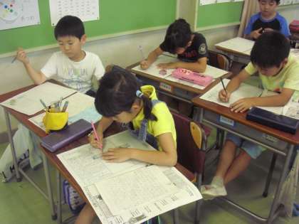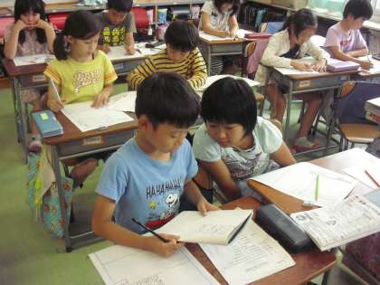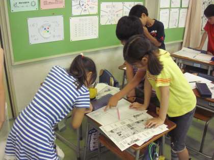 自分の感じた驚きや発見、友達に伝えたいことなどを見学の時のメモや写真を見ながら考え、一人ひとりが自分の新聞を書きます。3年生にとって初めての新聞を書くということで、題名・発行者・発行日・小見出し・レイアウトなど、新聞のポイントも押さえました。