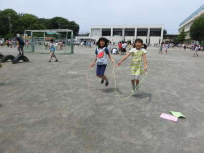 中休みや昼休みには、短縄を持って校庭に出て、たくさんの子どもたちが友達とともに縄跳びを楽しんでいます。今日も、縄跳びカードに示された回数に挑戦する子、上手になりたい跳び方に挑戦する子、友達と一緒になって跳ぶことに挑戦する子など、暑さに負けず元気に運動に取り組んでいました。