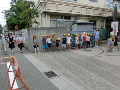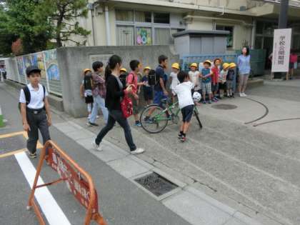 正門では、1年生のみなさんが、声かけ隊を務め大きな声で上級生、交通安全教室のため自転車を運んでくださっている保護者の方々にも、元気よく“おはようございます!”とあいさつをしていました。