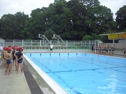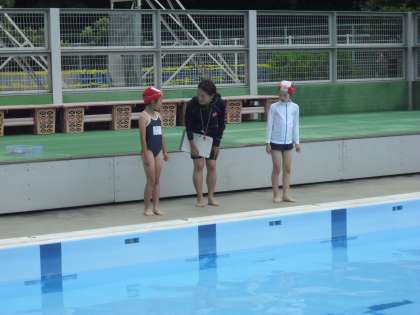 プール開きでは校長先生の話と代表児童の言葉を聞き、一人ひとりが学習の安全や水泳のめあてについて考えました。