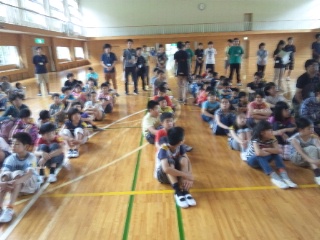 1時15分から火災発生を想定した避難訓練を行い、体育館に避難、集合しました。引き続き、河口湖移動教室の開園式を行い、二泊三日の生活が始まりました。とても嬉しそうな子どもたちです。