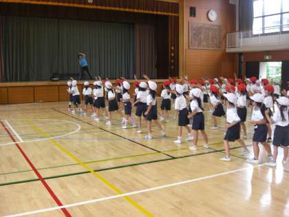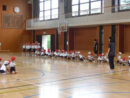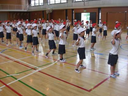 今日は水泳学習の予定でしたが、水温・気温が十分な数値に達していないため、体育館で水泳学習に必要な約束について学習しました。「水泳学習で気を付けること」「シャワーについて」「バディのしかた」「入水のしかた」などです。子どもたちは真剣に話に耳を傾けていました。