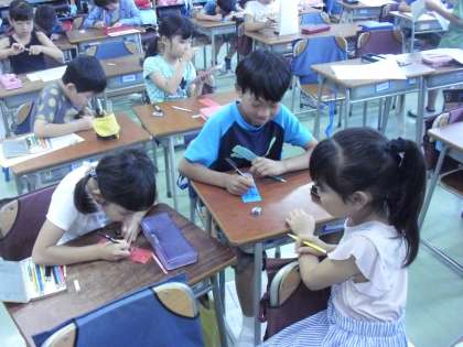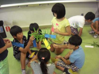 (「○○が欲しい」という、物やお金が欲しいという願いはNGとして)将来の夢や家族の健康など、思い思いの願い事を短冊に書いて教室に飾りました。