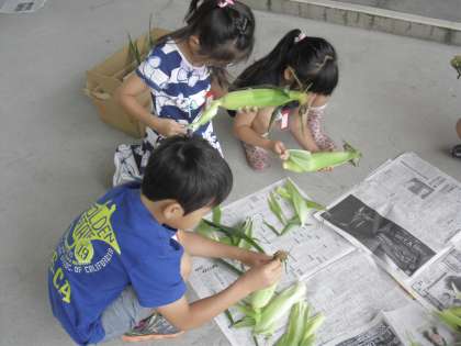 給食の時には、自分たちが剥いたとうもろこしを嬉しそうに食べていました。