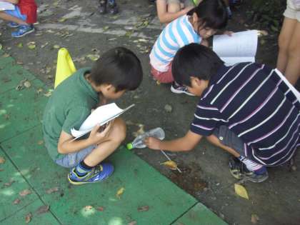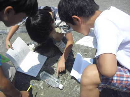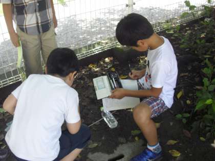 今日は、日なたと日陰の温度の違いを温度計で測定し、ノートに記録していきました。温度計を正確に読み取ろうと真剣な表情で目盛りを見つめている子どもたちでした。