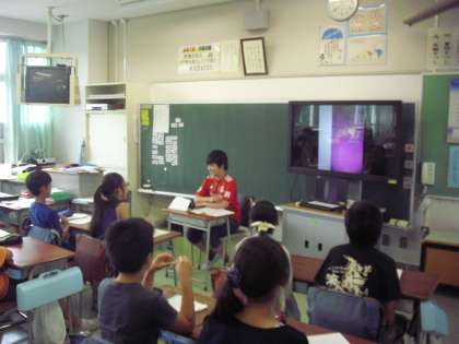 今日は1組で総合的な学習の時間「日光探検隊」の学習発表会を行いました。プレゼンテーションソフトを活用しての発表は初めての試みで、子どもたちはみな緊張していました。そんな中で日光東照宮のことや特産物のことなど、各自が調べたことを上手に伝えることができました。
