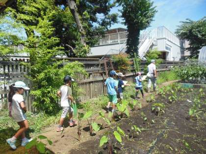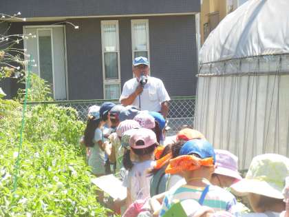 地域の農家の方にご協力いただき、夏野菜がどのように作られているのかを実際に見ることができました。たくさん野菜が採れればよいというものでもなく、育てやすさや効率、品質など様々なことが考えられた上で野菜が生産されていること等を、子どもたちは学ぶことができました。