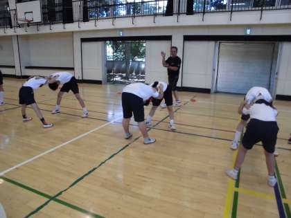 今日は上祖師谷中学校の体育館で、I組の生徒と交流会を行いました。