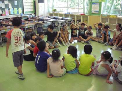 また、それぞれの班で遊びリーダーを立てて、「ハンカチ落とし」や「フルーツバスケット」など、みんなが楽しめるよう遊びを計画しました。