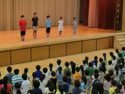 続いて、児童代表として、3年生と6年生の5名の学級代表のみなさんから、1学期に頑張ったこと・嬉しかったこと、これからの目標等について、とても上手なスピーチがあり、大きな拍手が送られました。