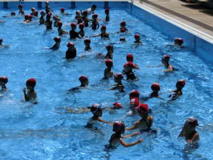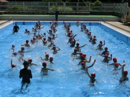 真夏日になった今日も、たくさんの子どもたちが水泳教室に参加しています。