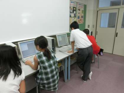22日から始まった烏山小学校“サマースクール”では、今年も上祖師谷中学校の生徒のみなさんが、ボランティア活動の一環として、各講座でのお手伝いと後輩へのアドバイスをしています。