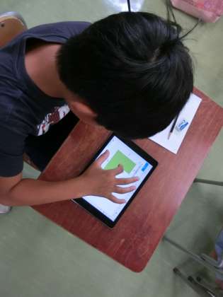 5・6年生の希望者を対象として、タブレット型パソコンの体験学習会が開かれました。