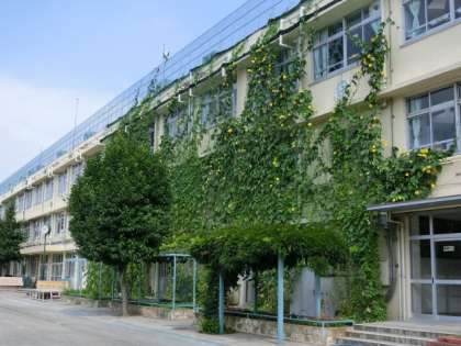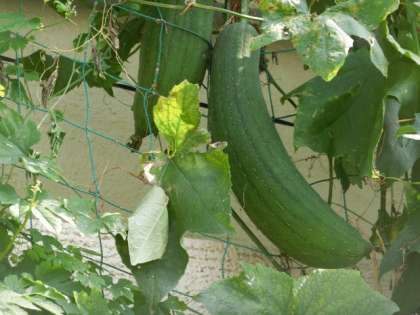 写真は、今日30日(木)の朝撮影したものです。屋上まで伸び、ヘチマやゴーヤーの実も大きくなり、ハチが蜜を吸いに飛び回っていました。暑さに負けず、元気よく成長しています。