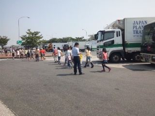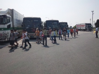 羽生パーキングエリアで休憩を取りました。道路事情でやや遅れての出発です。10時10分です。世田谷区立小学校と顔合わせもしました。