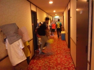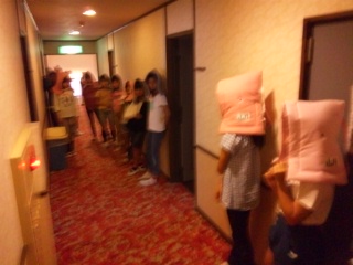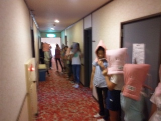 開園式を済ませ、部屋に入りました。早速、避難訓練を行いました。係の打ち合わせ、入浴、夕食とスケジュールが進みます。