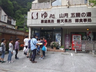 子どもたちは入浴を楽しんでいます。汗をいっぱいかいたので、出てきた感想は、気持ちよかった!男子は別館の展望・露天風呂に入っています。明日は女子が利用します。