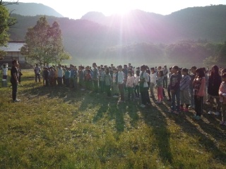 おはようございます!日光林間学園2日目です。全員元気に6時?に起床し、湯ノ湖畔まで散歩し、朝会を行いました。雲一つない晴天です。