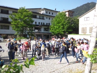 いよいよ宿舎を出発します。これから近くの源泉へ向かいます。