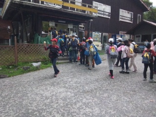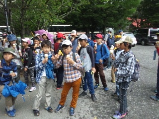 子どもたちは頑張って歩きました。予定より早く光徳牧場に着きました。お弁当を食べ、アイスクリームも食べました。雷雨が来たためバスの中でアイスクリームを食べている人もいましたが、美味しくいただくことができました。