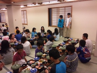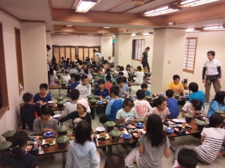 ハイキングコースを歩き通し、達成感いっぱいの子どもたちです。夕食も食欲旺盛!美味しくいただきました。片付けも生活班で手際よく行っていました。