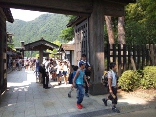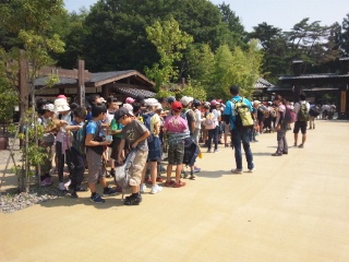 日光江戸村に着きました。行動班でアトラクション巡りにスタートしました。