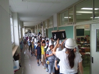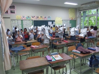 今日は「防災の日」です。本校では、大きな地震発生を想定した避難訓練を行いました。約束を守った避難行動を取り、落ち着いて訓練をすることができました。