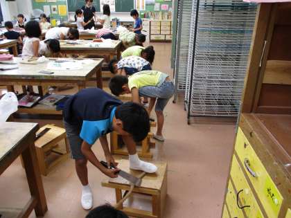 図工科の学習では、展覧会に向けて作品づくりを進めています。