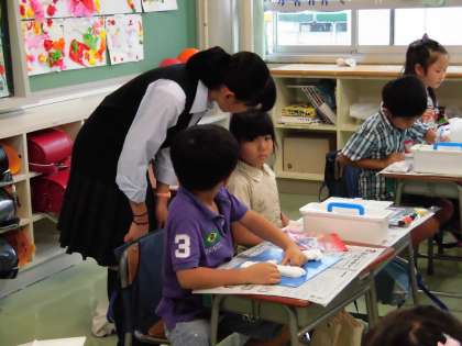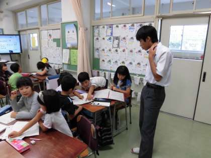 この日は、1年生の図工「のばしてぺったん」と2年生の生活科「つくってあそぼう」のお手伝いをしました。困っている子にやさしく声をかけたり、頑張った子をうんとほめたりしてくれたりしました。丁寧にお世話をしてくれたので、とても助かりました。