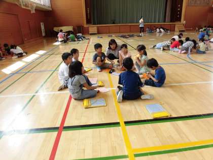 2時間目には、1・2年生で顔合わせを行いました。同じ班の友達の名前を知り、お弁当や班行動など、班での活動がより一層楽しみになったようでした。
