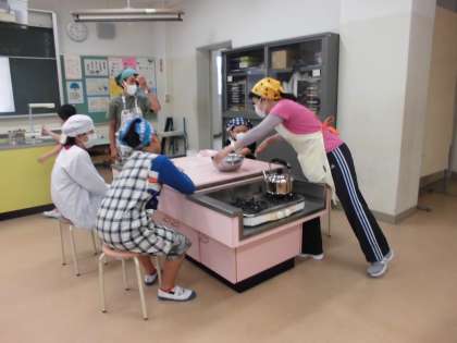 子どもたちは班に分かれて、計量カップを使って水を量ったり、かき混ぜたりする活動をしました。