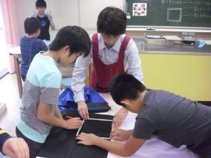 1組は家庭科でクッションカバー作りに挑戦していました。展覧会に出品するということで、どの子も張り切って取り組んでいました。